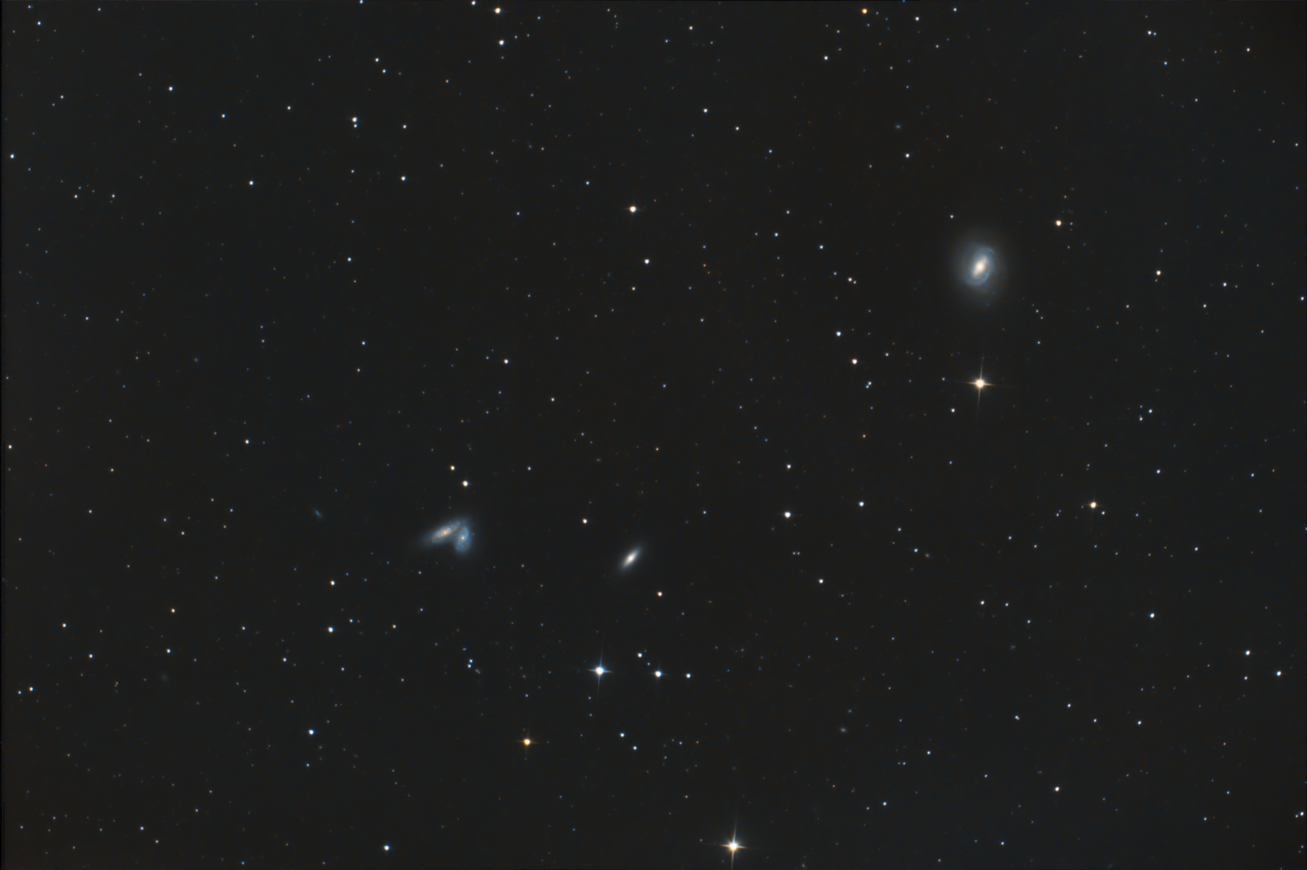 ca. 68Mio. Lj. entfernt. Links unten sind zwei interagierende Galaxien ("The Siamese Twins": NGC4567+NGC4568) zu sehen. Die Galaxie rechts daneben ist NGC4564. |